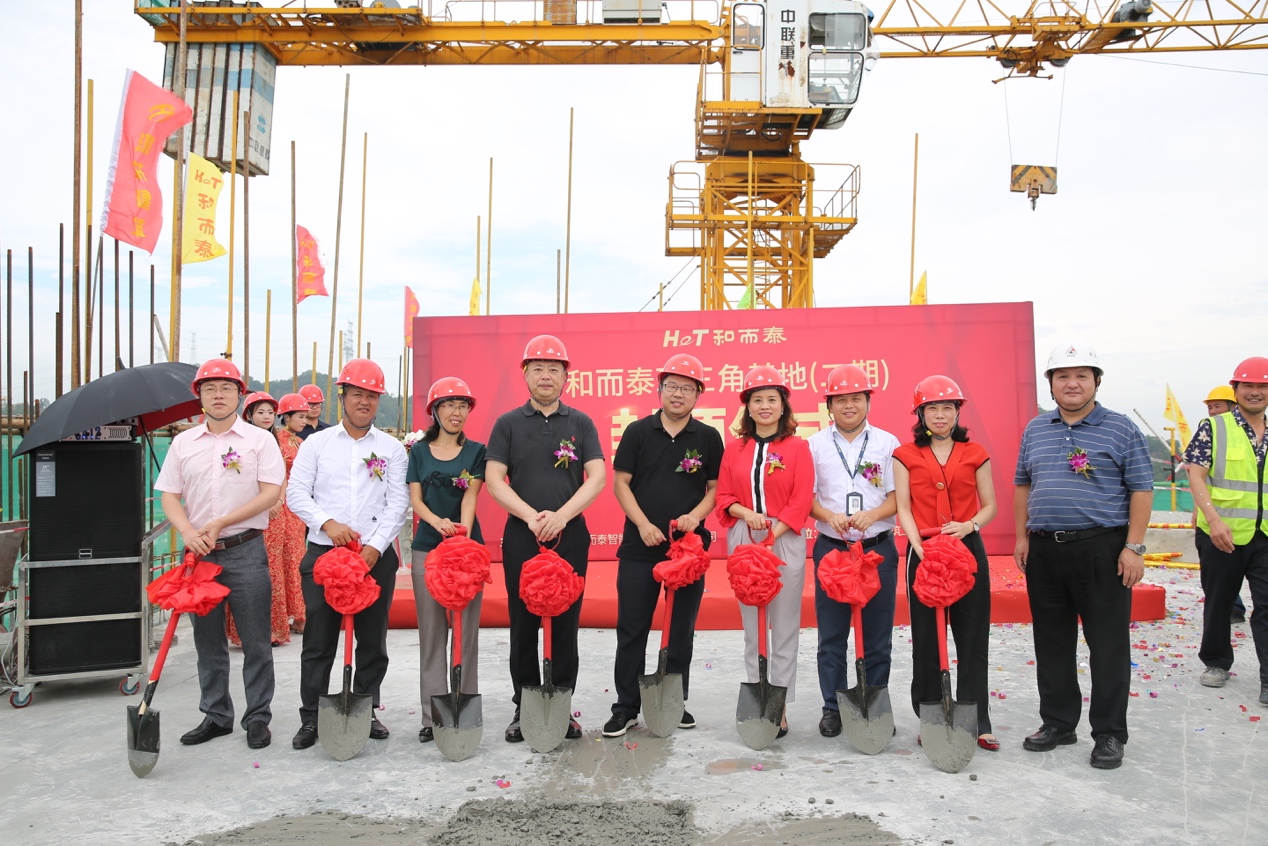 7月18日上午,位于深圳光明新区的和而泰珠三角基地迎来激动人心的一刻,和而泰珠三角基地(二期)工程的主体建筑正式封顶,并举办了隆重的封顶仪式,和而泰董事长兼总裁刘建伟、副总裁罗珊珊及二期大楼的监理方、施工方等众多领导及客户代表出席封顶仪式。