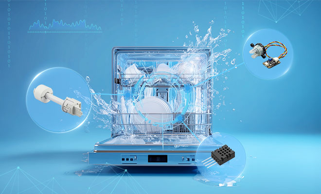洗碗机智能传感器及方案,包括高精度多合一浊度检测、多级液位监测与动态温湿度感知模块,通过多源数据融合与AI算法,实现对餐具污浊度、水位及舱内环境的实时精准判断,动态优化洗涤强度、用水量与烘干策略,在保障清洁效果的同时显著提升能效与资源利用率。
