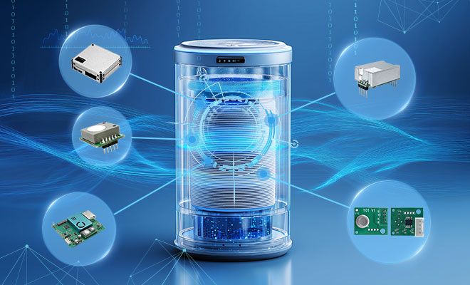 空气净化器智能传感器及方案,包括PM2.5、CO₂、甲醛、TVOC及多合一气体传感器,实现对室内空气质量的全参数实时监测,并依据污染特征辅助调节净化模式,在保障健康呼吸环境的同时优化能效,推动空气管理向智能化、可视化演进。